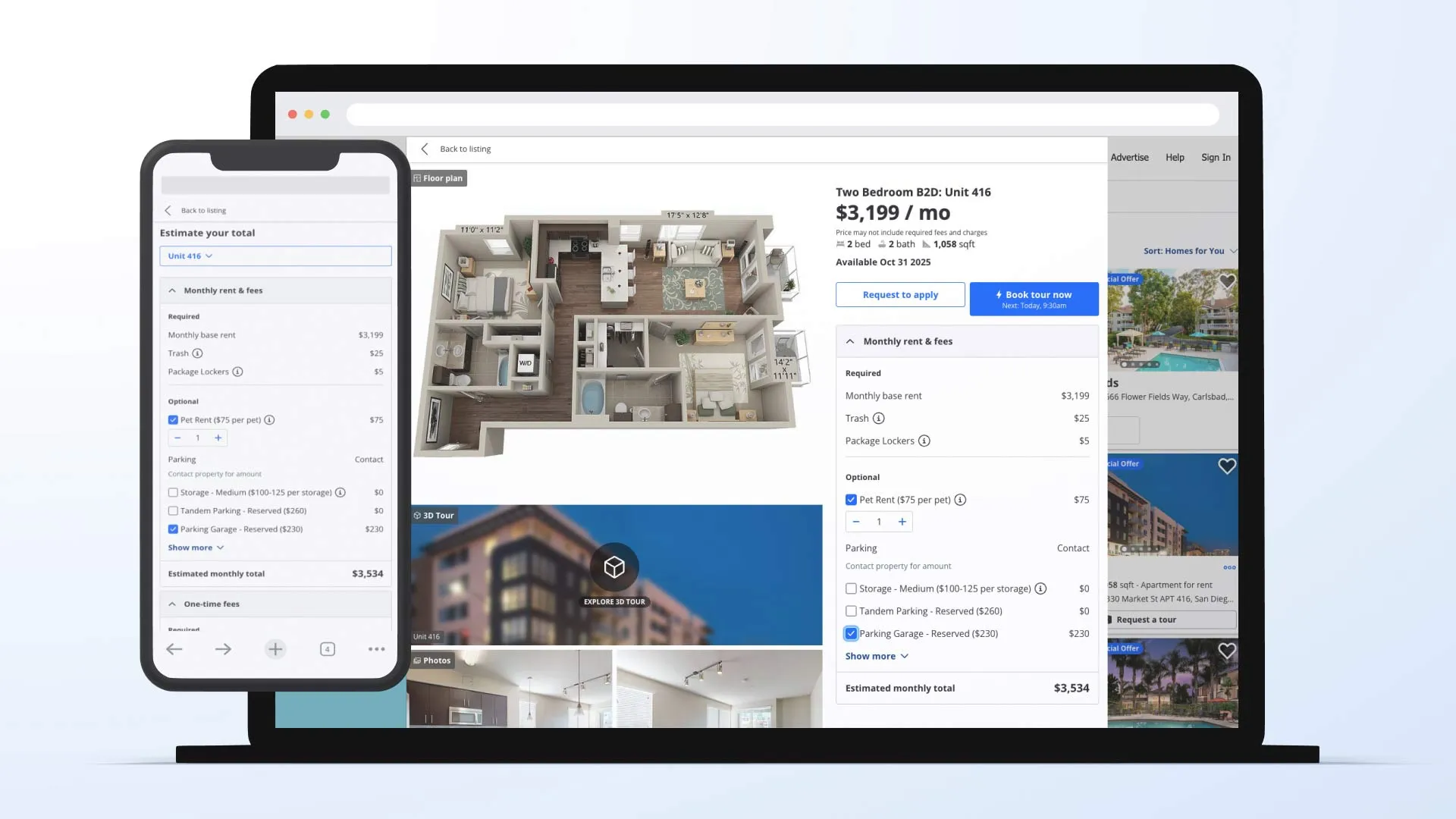 • Supports structured fee feeds, enabling clear all-in monthly pricing for renters